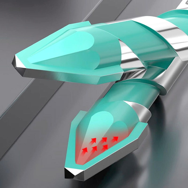 EXZENTRISCHES DESIGN MIT SCHRÄGEM KOPF: Das innovative Design ermöglicht eine bessere Spanabfuhr und verringert die Reibung, was zu einem reibungsloseren und effizienteren Bohren durch verschiedene Oberflächen führt.